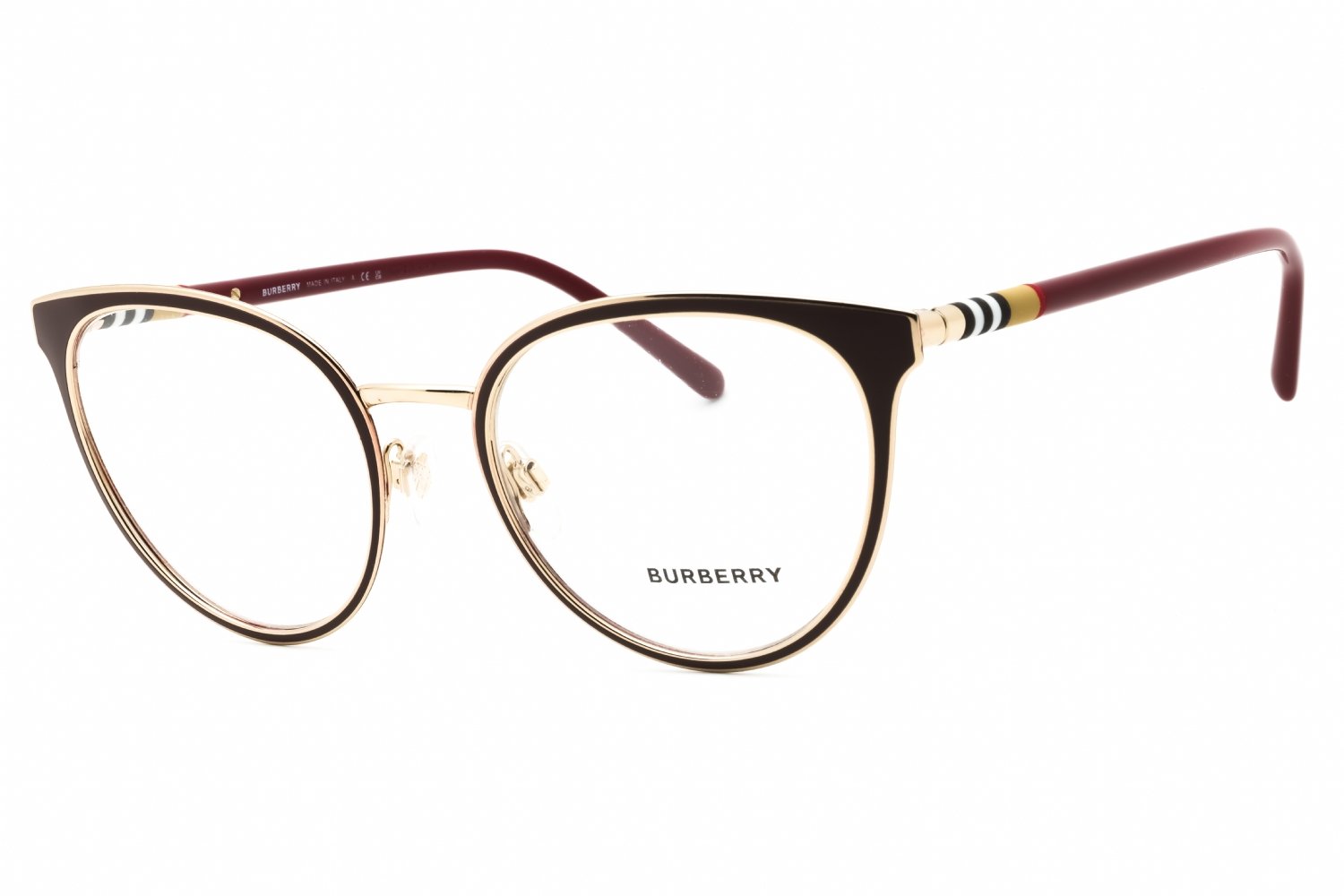Burberry BE1324 in Bordeaux/Light Gold. This model features an eye catching shape to complement your facial features.The frame is made from quality materials, balancing weight and strength for your ultimate comfort.