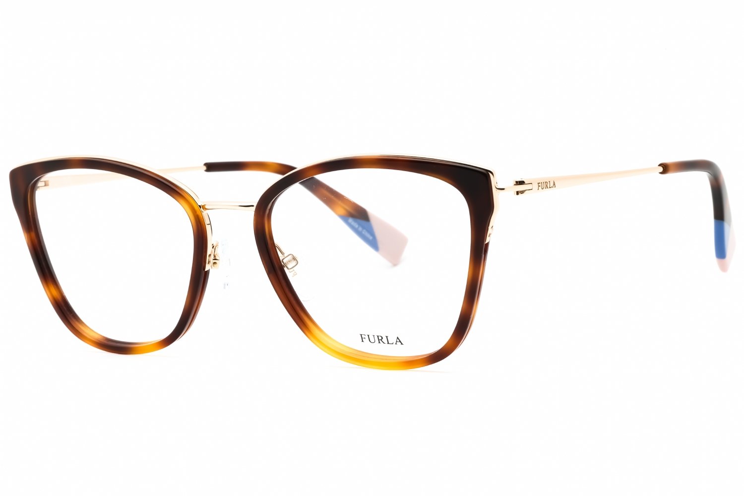 Furla VFU253 in Tortoise. This model features an eye catching shape to complement your facial features.The frame is made from quality materials, balancing weight and strength for your ultimate comfort.