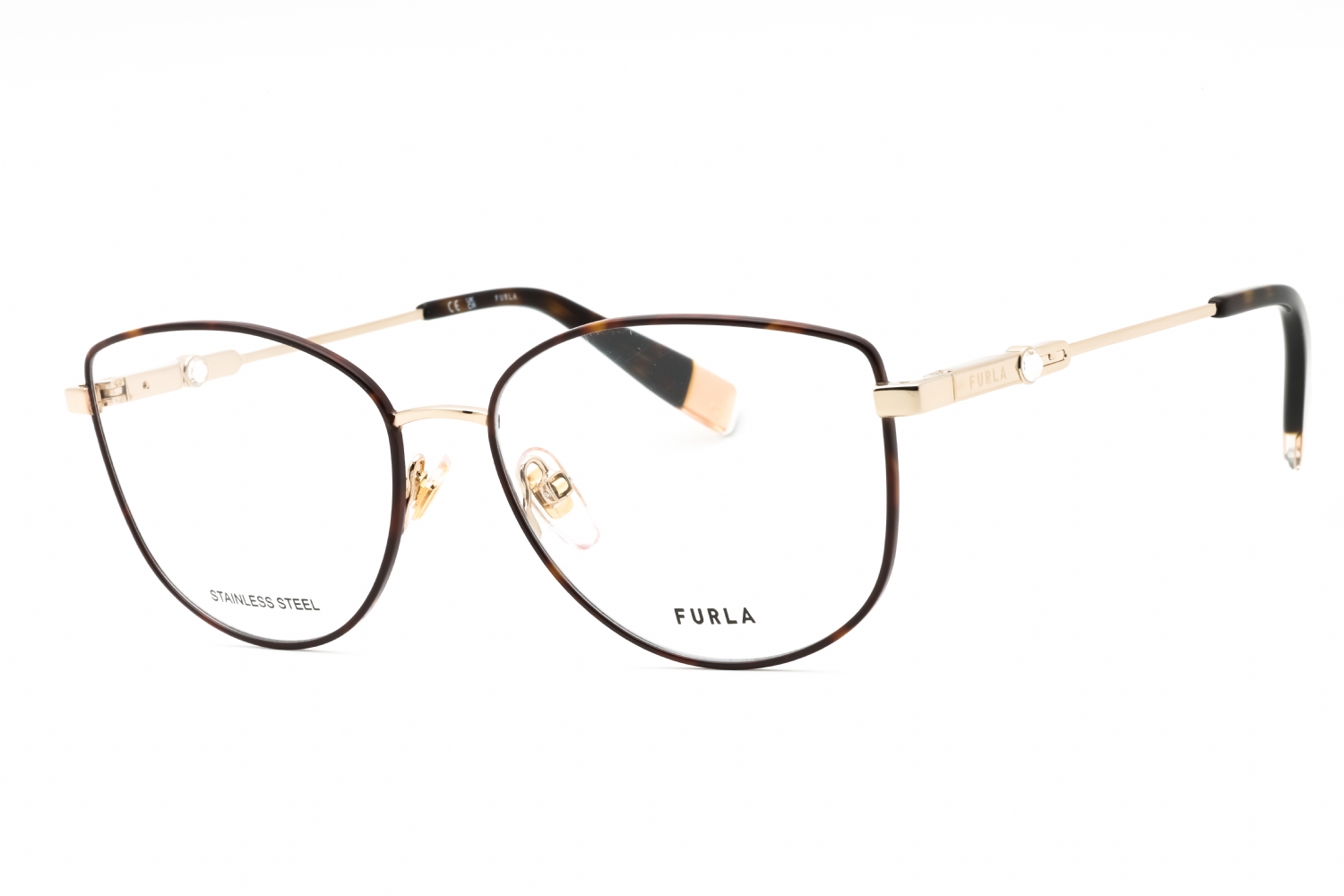 Furla VFU391S in Tortoise. This model features an eye catching shape to complement your facial features.The frame is made from quality materials, balancing weight and strength for your ultimate comfort.