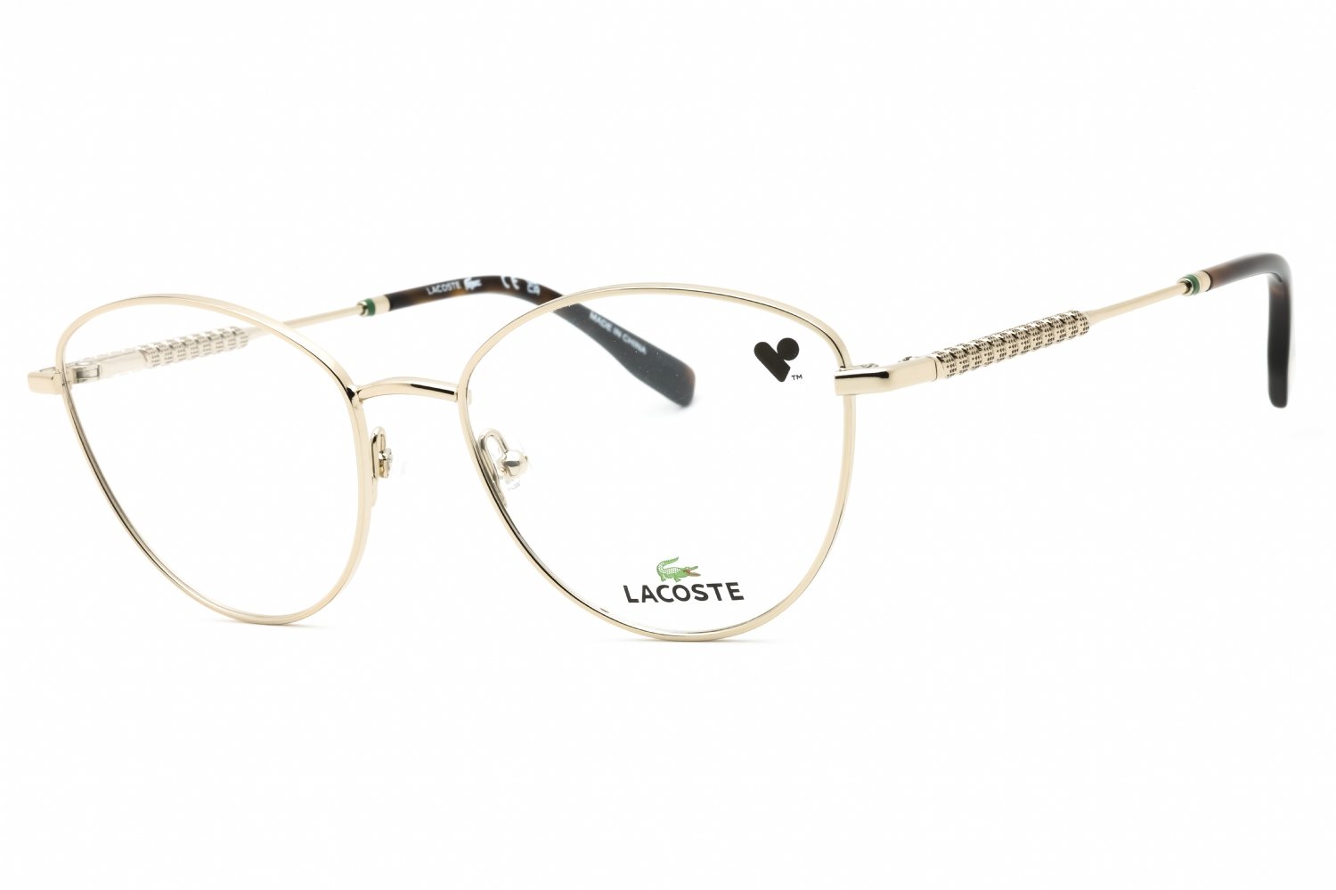 Lacoste L2289 in Shiny Gold. This model features an eye catching shape to complement your facial features.The frame is made from quality materials, balancing weight and strength for your ultimate comfort.