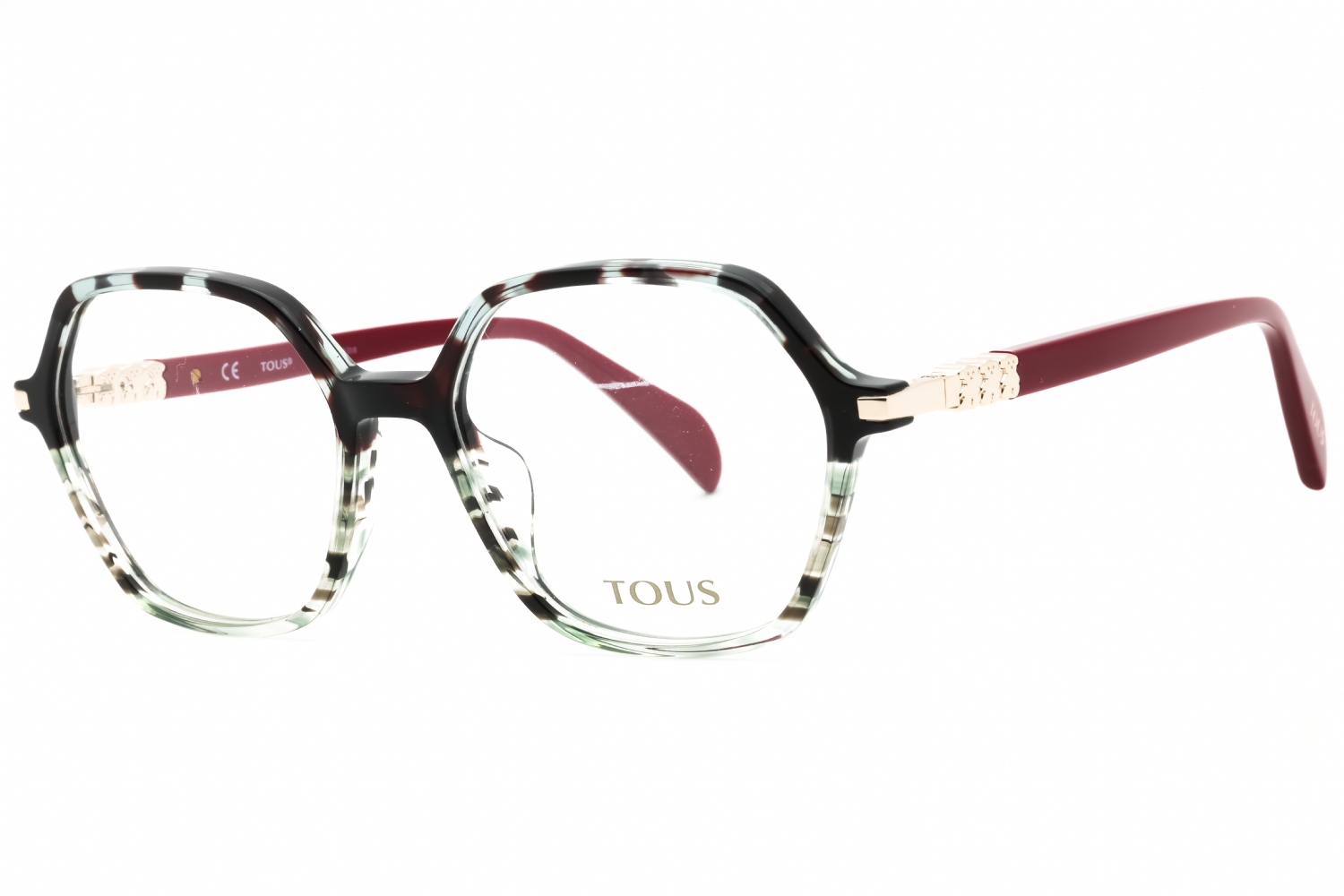 Tous VTOB10 in Shiny Red Feather Havana. This model features an eye catching shape to complement your facial features.The frame is made from quality materials, balancing weight and strength for your ultimate comfort.