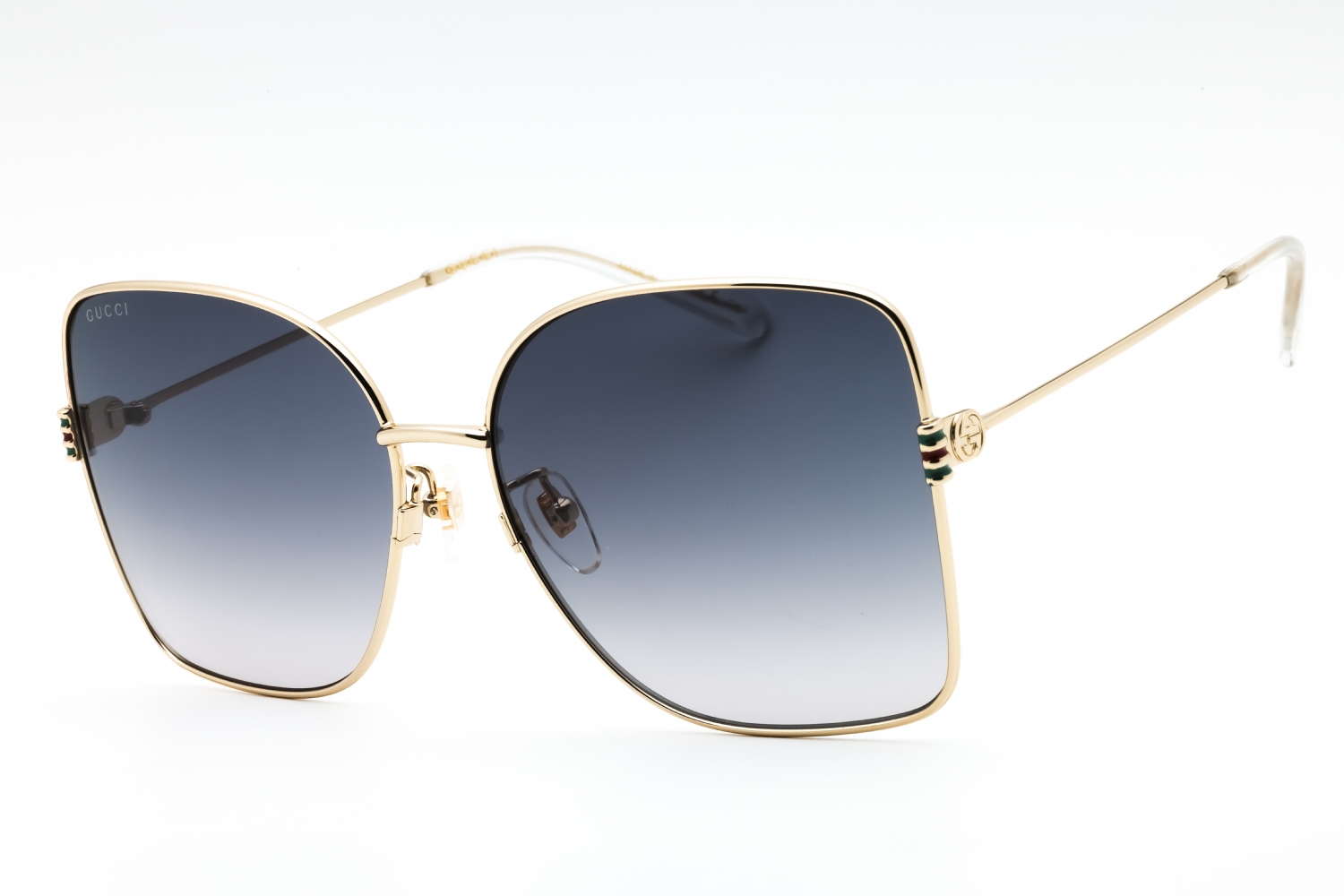 Gucci GG1282SA in Gold-Gold-Grey. This model features an eye catching shape to complement your facial features.The frame is made from quality materials, balancing weight and strength for your ultimate comfort.