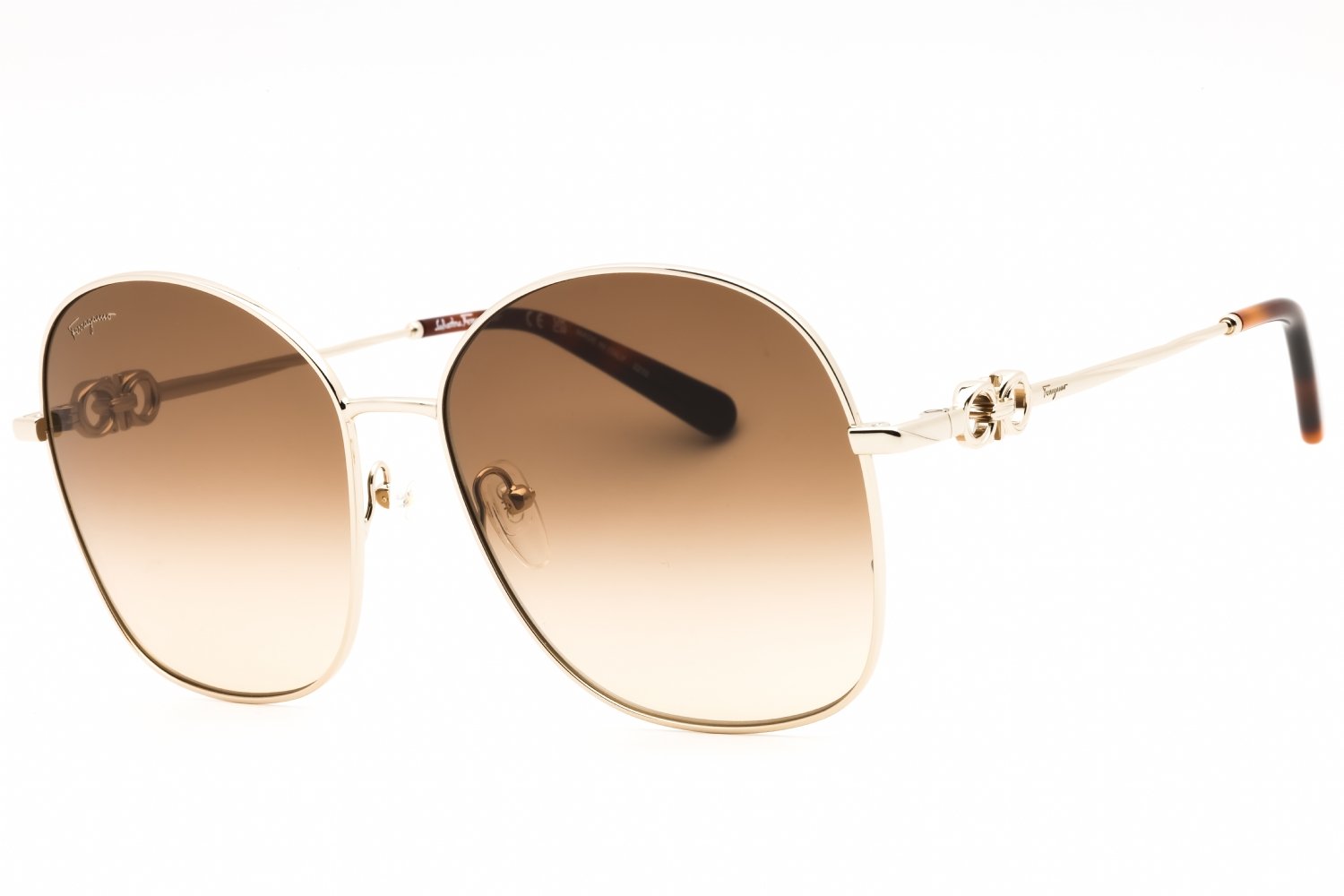 Salvatore Ferragamo SF297S in Gold. This model features an eye catching shape to complement your facial features.The frame is made from quality materials, balancing weight and strength for your ultimate comfort.
