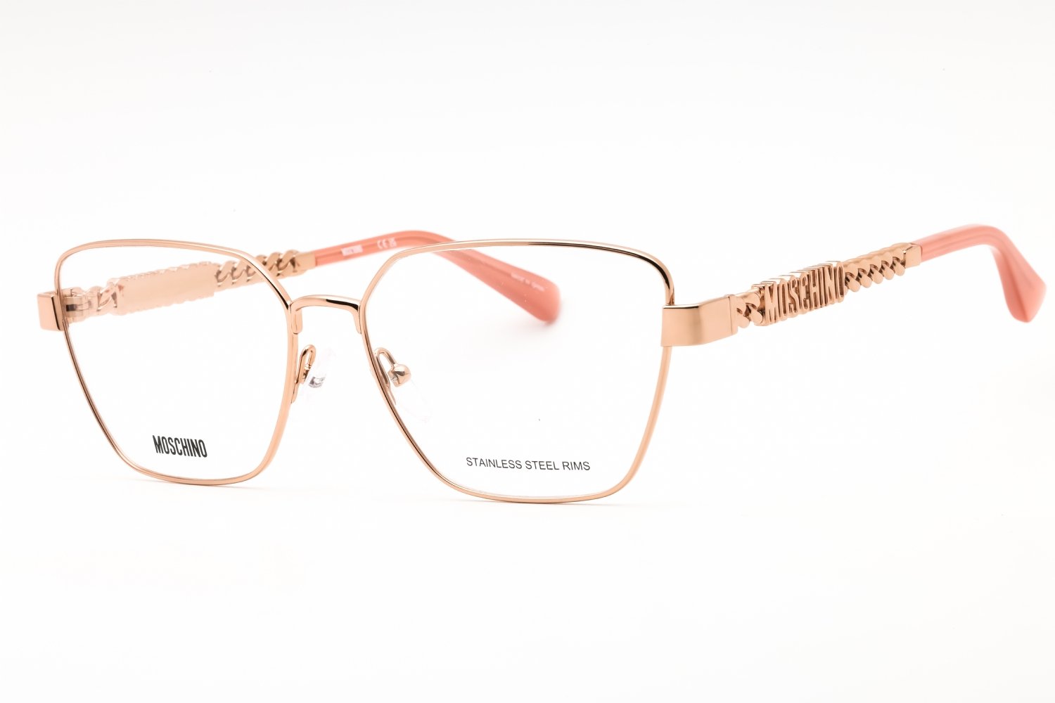 Moschino MOS620 in Rose Gold. This model features an eye catching shape to complement your facial features.The frame is made from quality materials, balancing weight and strength for your ultimate comfort.