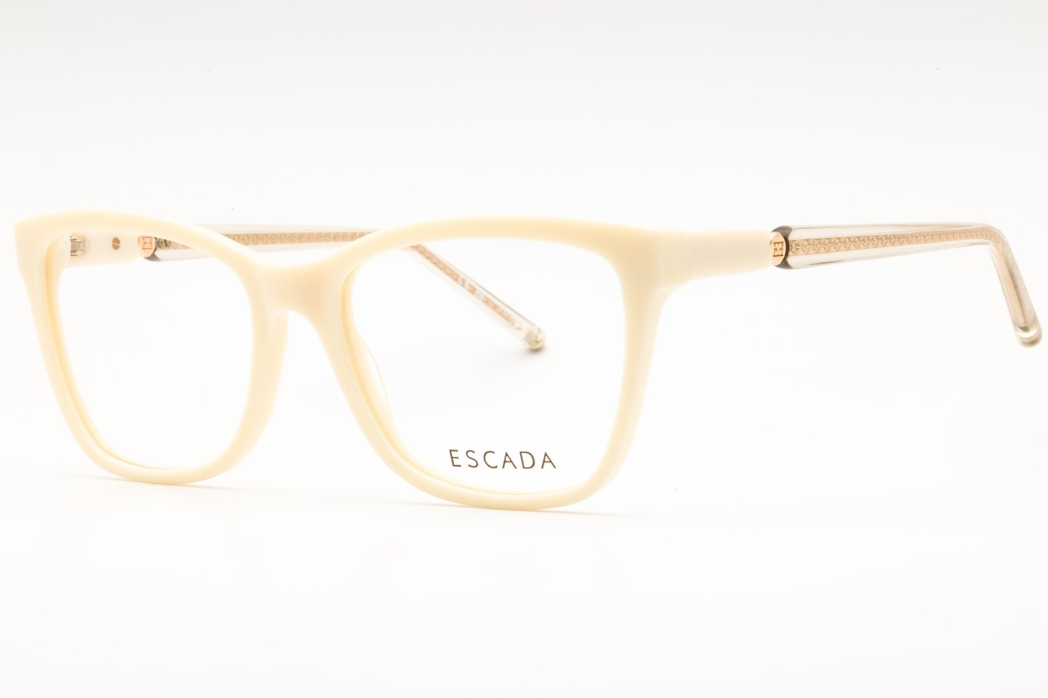 Escada VESD85 in Shiny Ivory. This model features an eye catching shape to complement your facial features.The frame is made from quality materials, balancing weight and strength for your ultimate comfort.