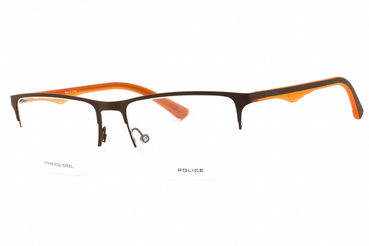 Police VPL398 in Shiny Dark Brown. This model features an eye catching shape to complement your facial features.The frame is made from quality materials, balancing weight and strength for your ultimate comfort.