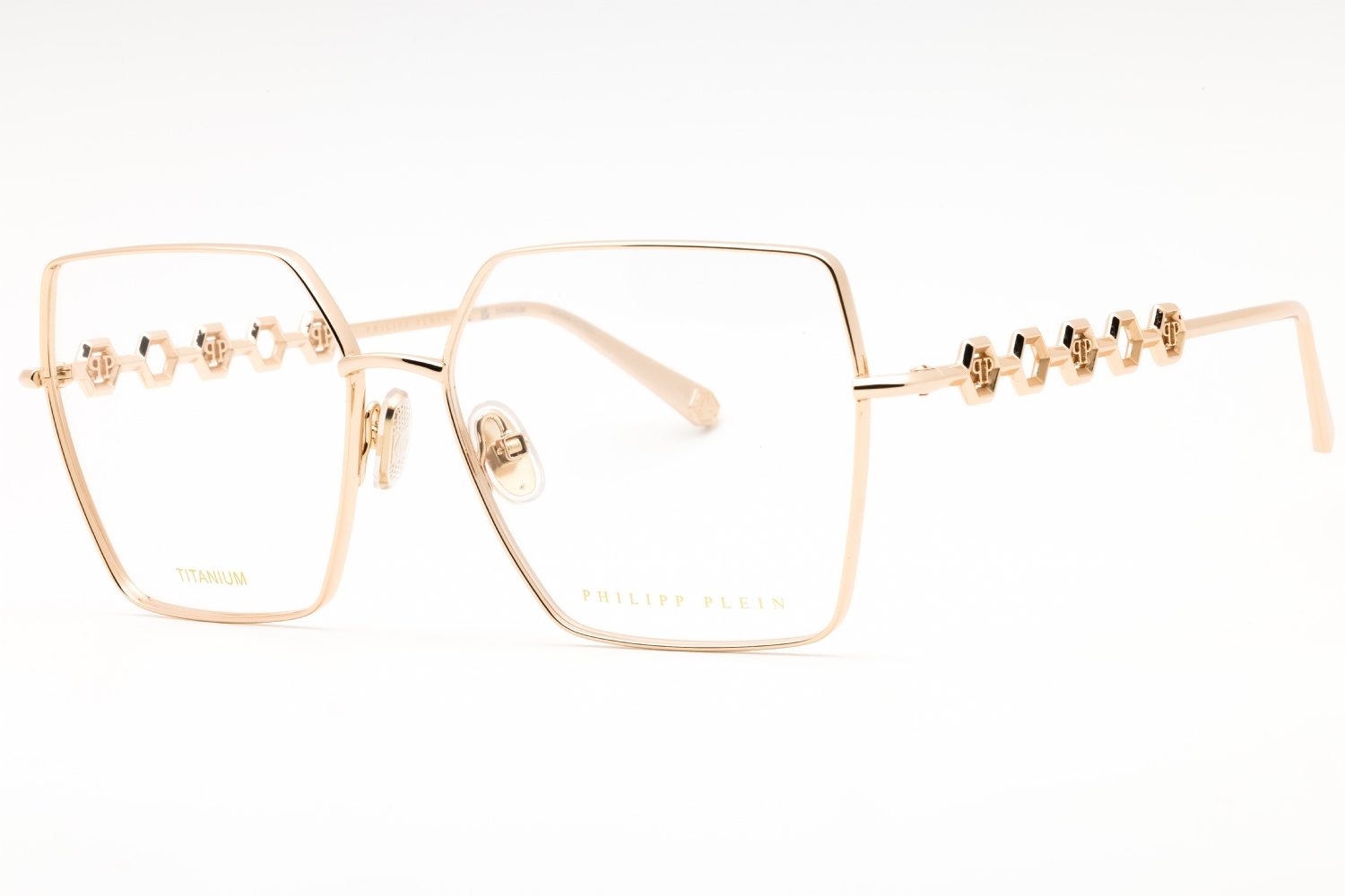 Philipp Plein VPP071M in Shiny Rose Gold. This model features an eye catching shape to complement your facial features.The frame is made from quality materials, balancing weight and strength for your ultimate comfort.