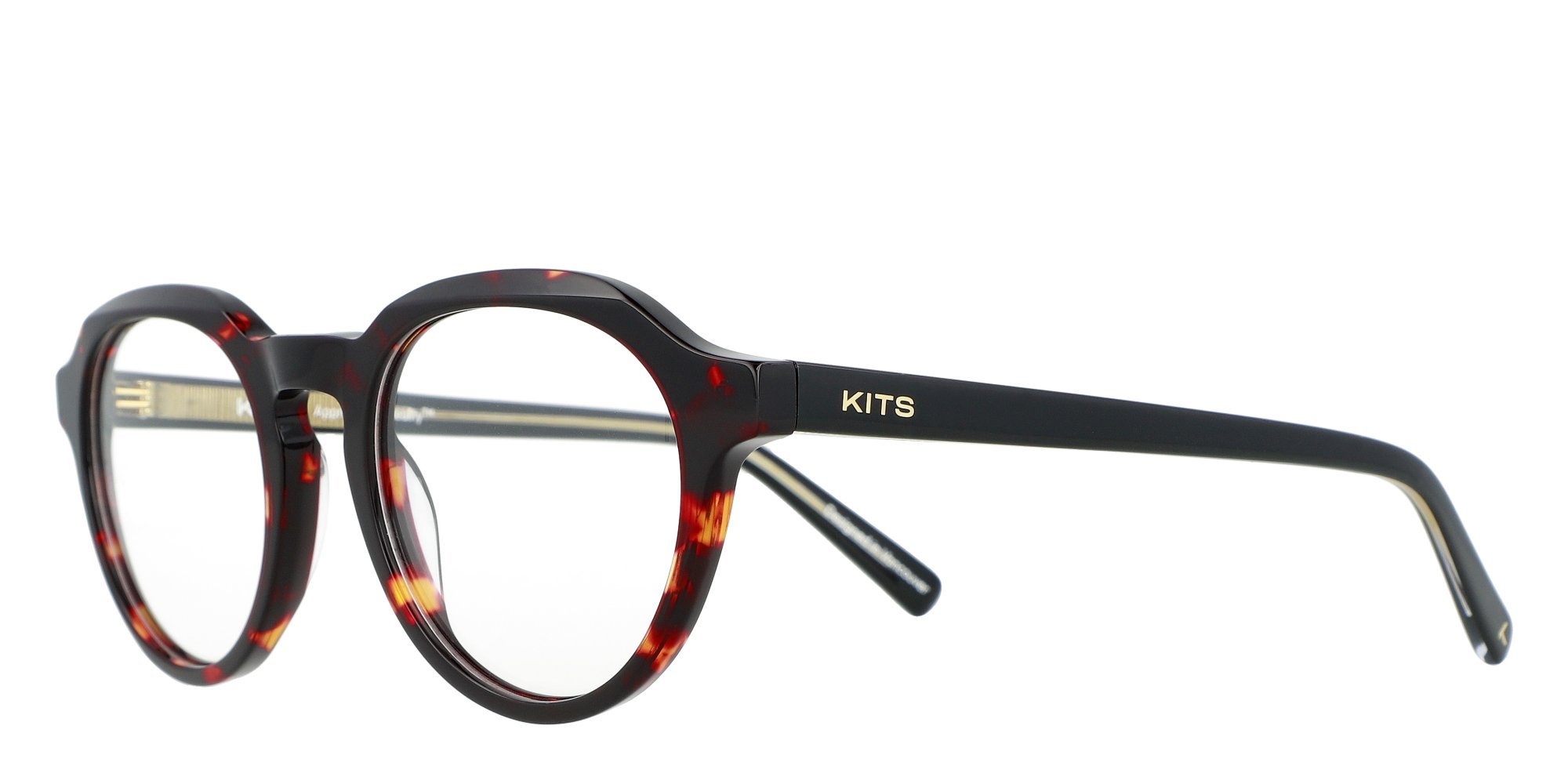 Round acetate frame with bevel accents and exposed internal wire-core temples.