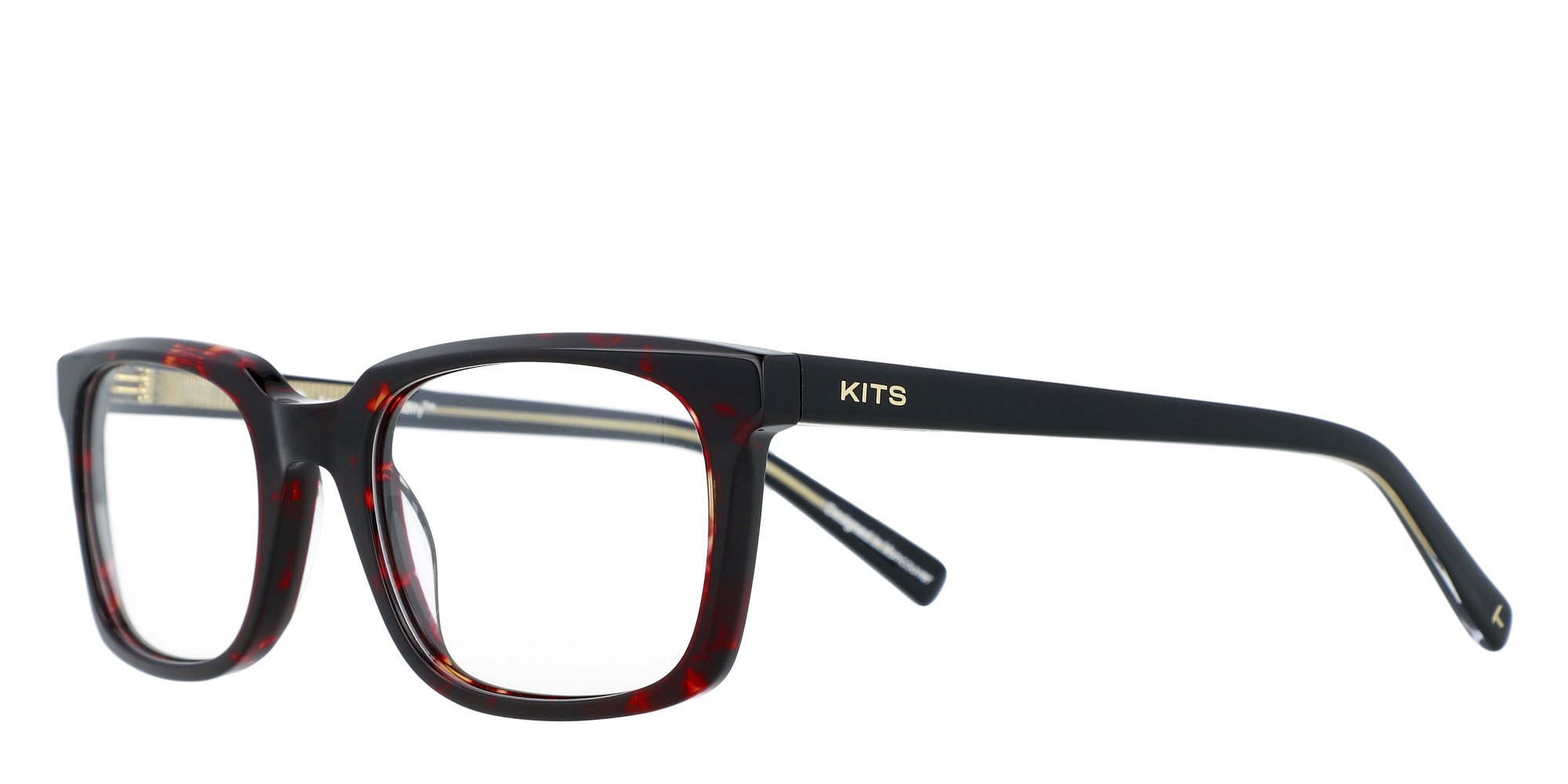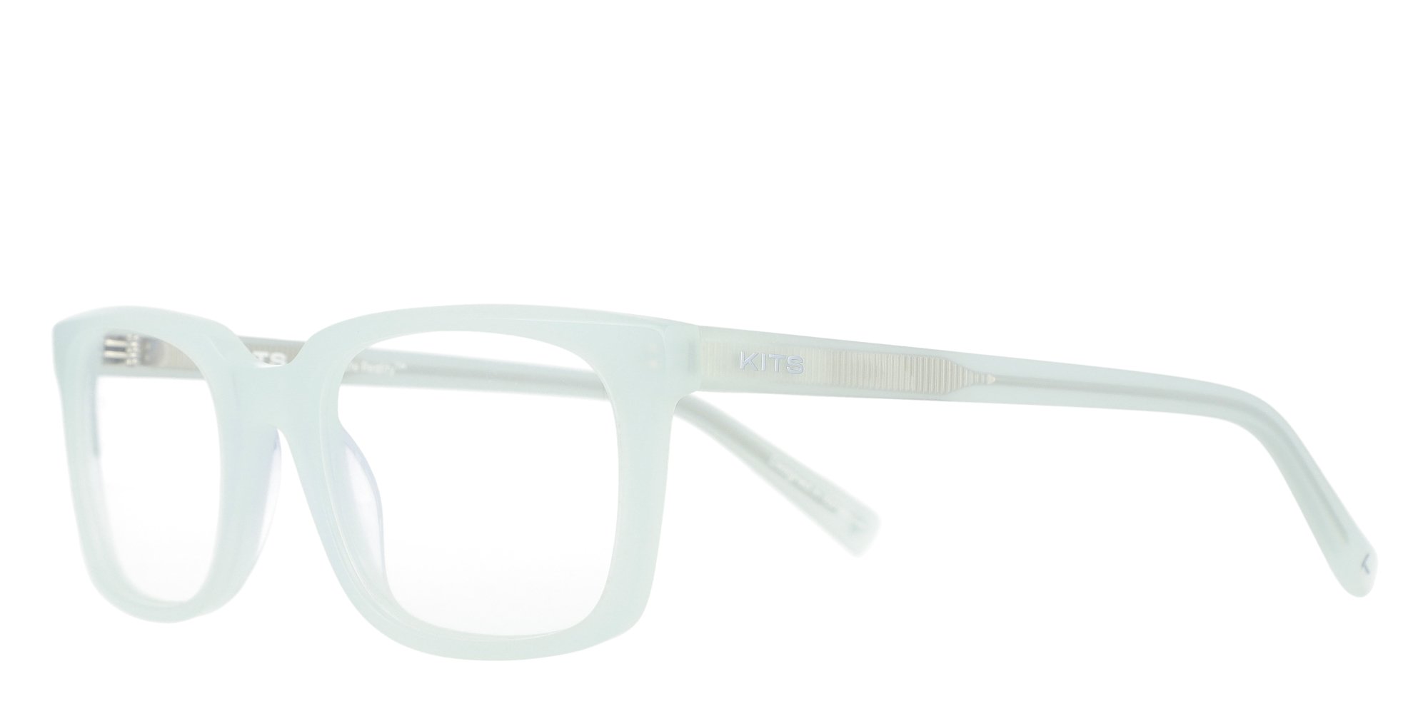 Rectangle acetate frame with bevel accents and exposed internal wire-core temples.