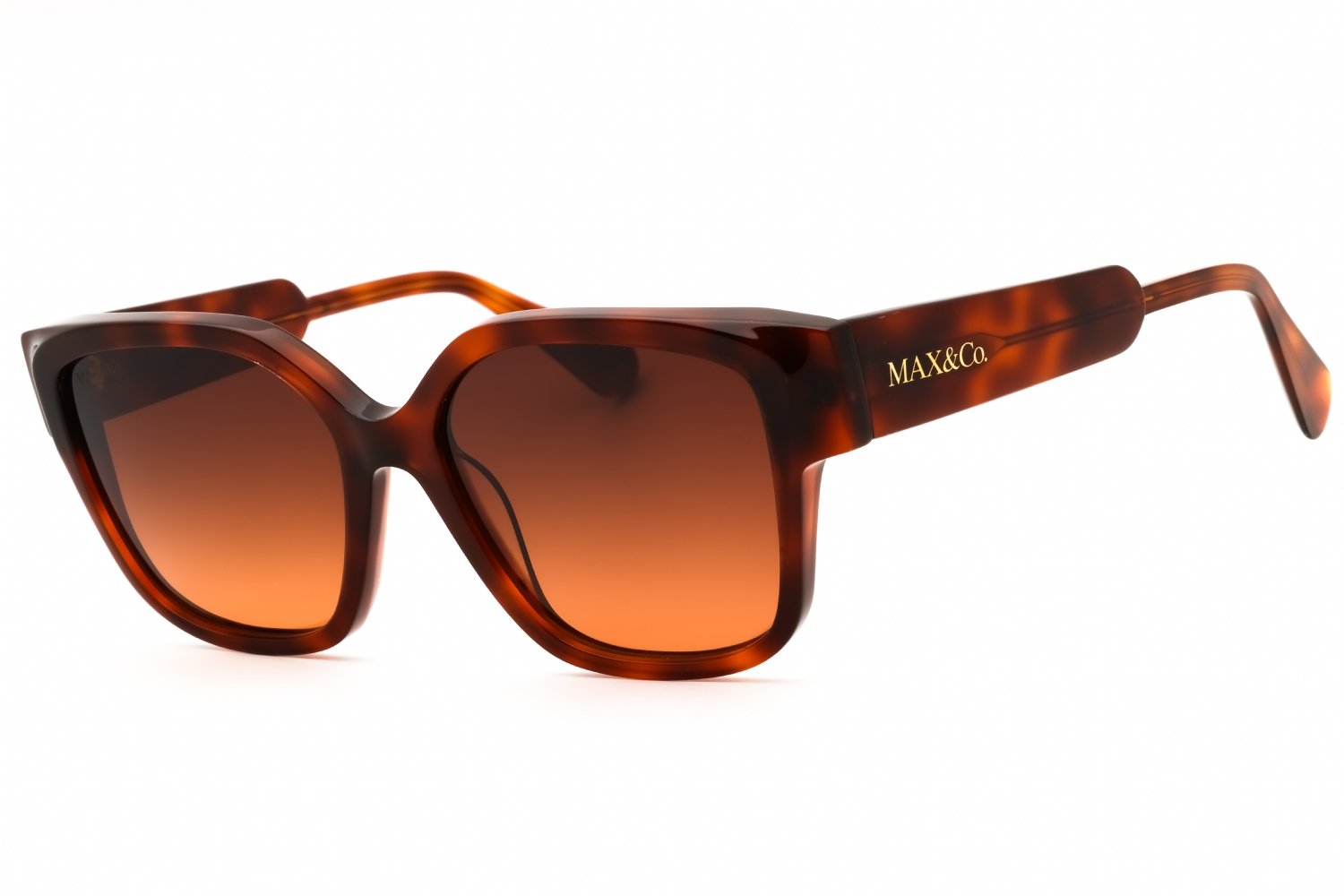 Max & Co MO0075 in Dark Havana. This model features an eye catching shape to complement your facial features.The frame is made from quality materials, balancing weight and strength for your ultimate comfort.