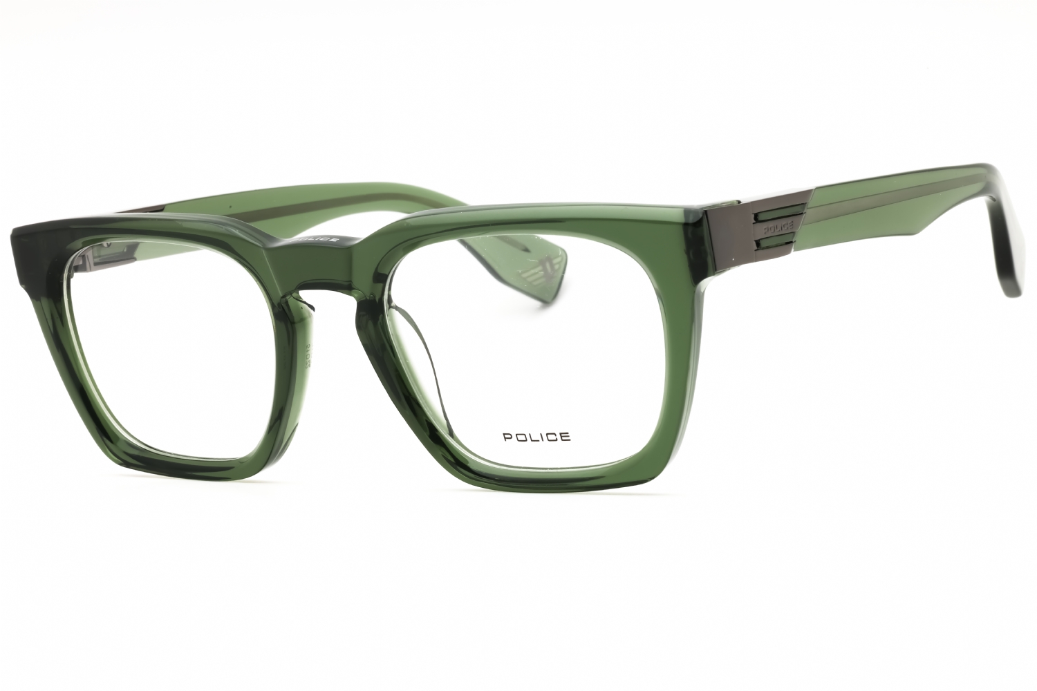 Police VPLN64E in Shiny Transparent Green. This model features an eye catching shape to complement your facial features.The frame is made from quality materials, balancing weight and strength for your ultimate comfort.