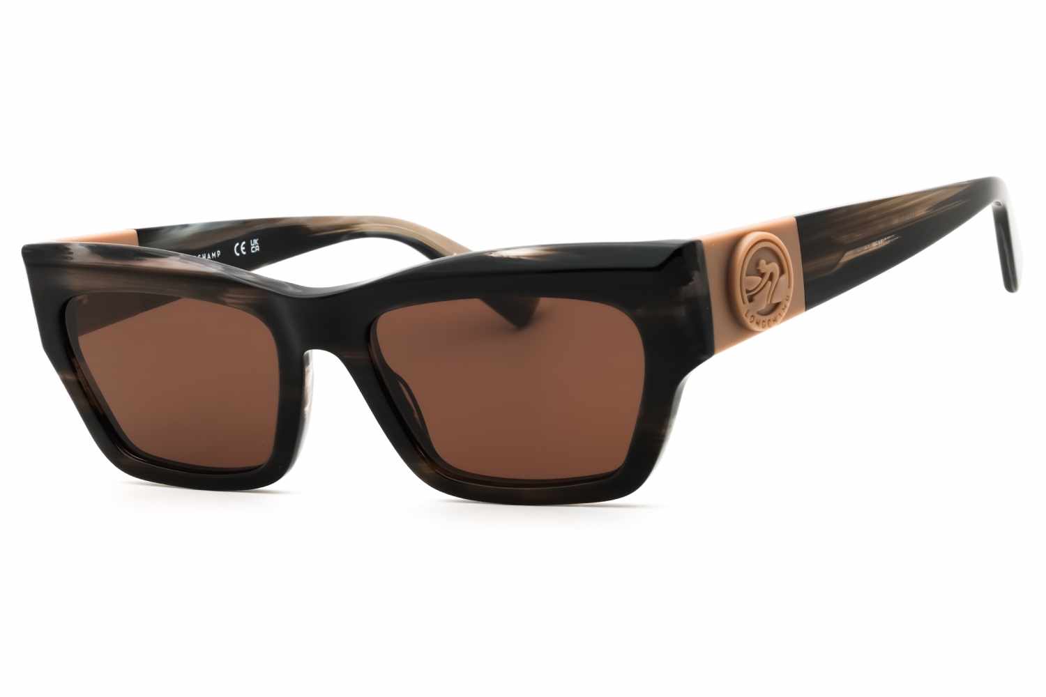 Longchamp LO763S in Striped Brown. This model features an eye catching shape to complement your facial features.The frame is made from quality materials, balancing weight and strength for your ultimate comfort.