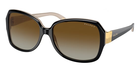 Ralph RA5138 in Shiny Black On Nude. This model features an eye catching shape to complement your facial features.The frame is made from quality materials, balancing weight and strength for your ultimate comfort.