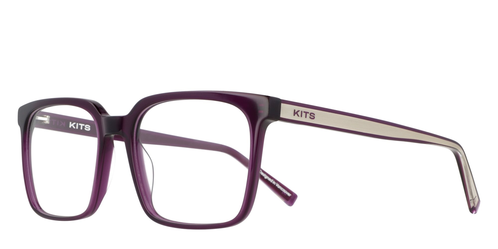 - Unique temple detail: embedded metal plate with KITS logo