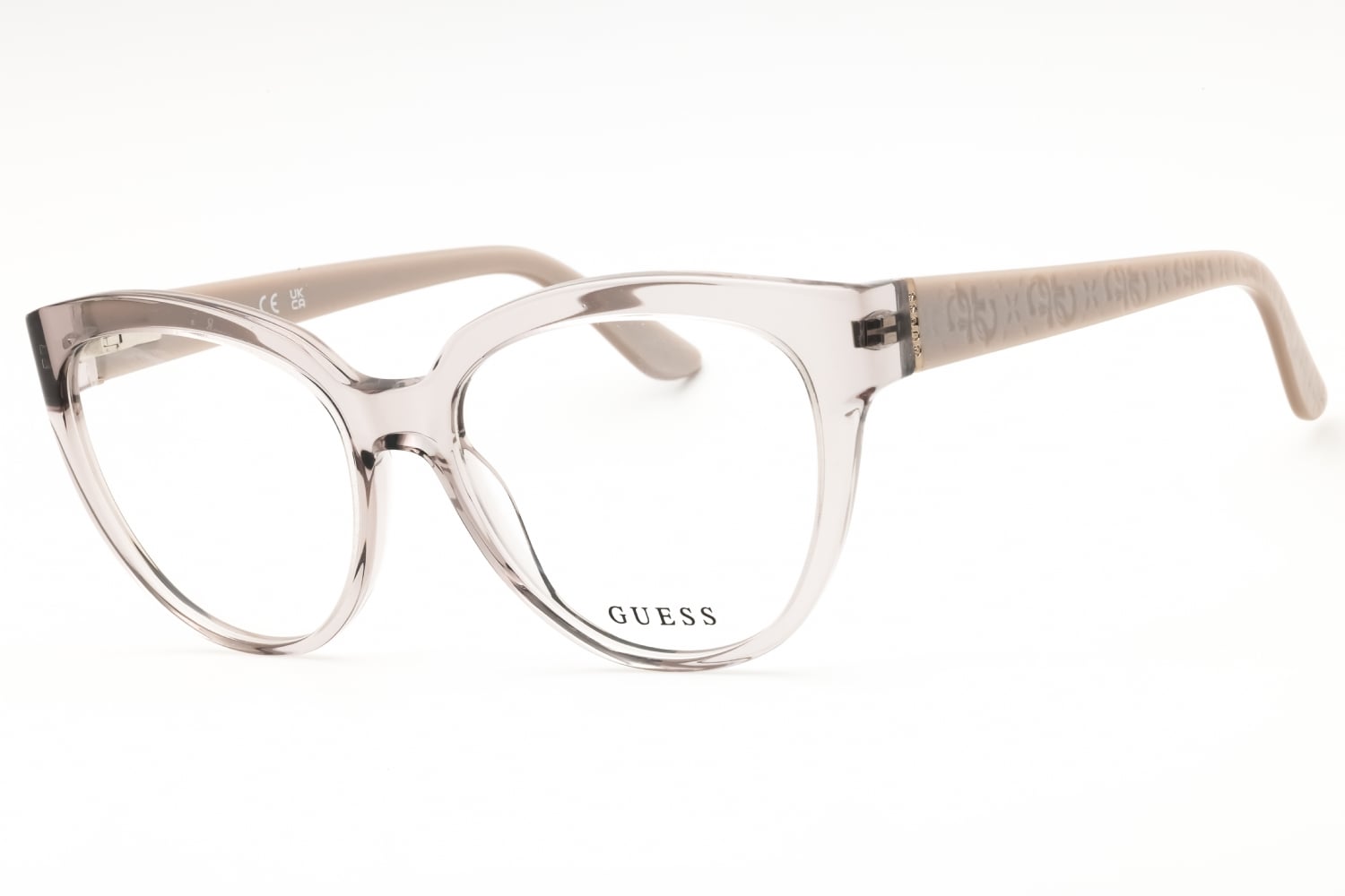 Guess GU50232 in Transparent Shiny Light Pink. This model features an eye catching shape to complement your facial features.The frame is made from quality materials, balancing weight and strength for your ultimate comfort.