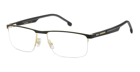 Carrera 8926 in Matte Black Gold. This model features an eye catching shape to complement your facial features.The frame is made from quality materials, balancing weight and strength for your ultimate comfort.