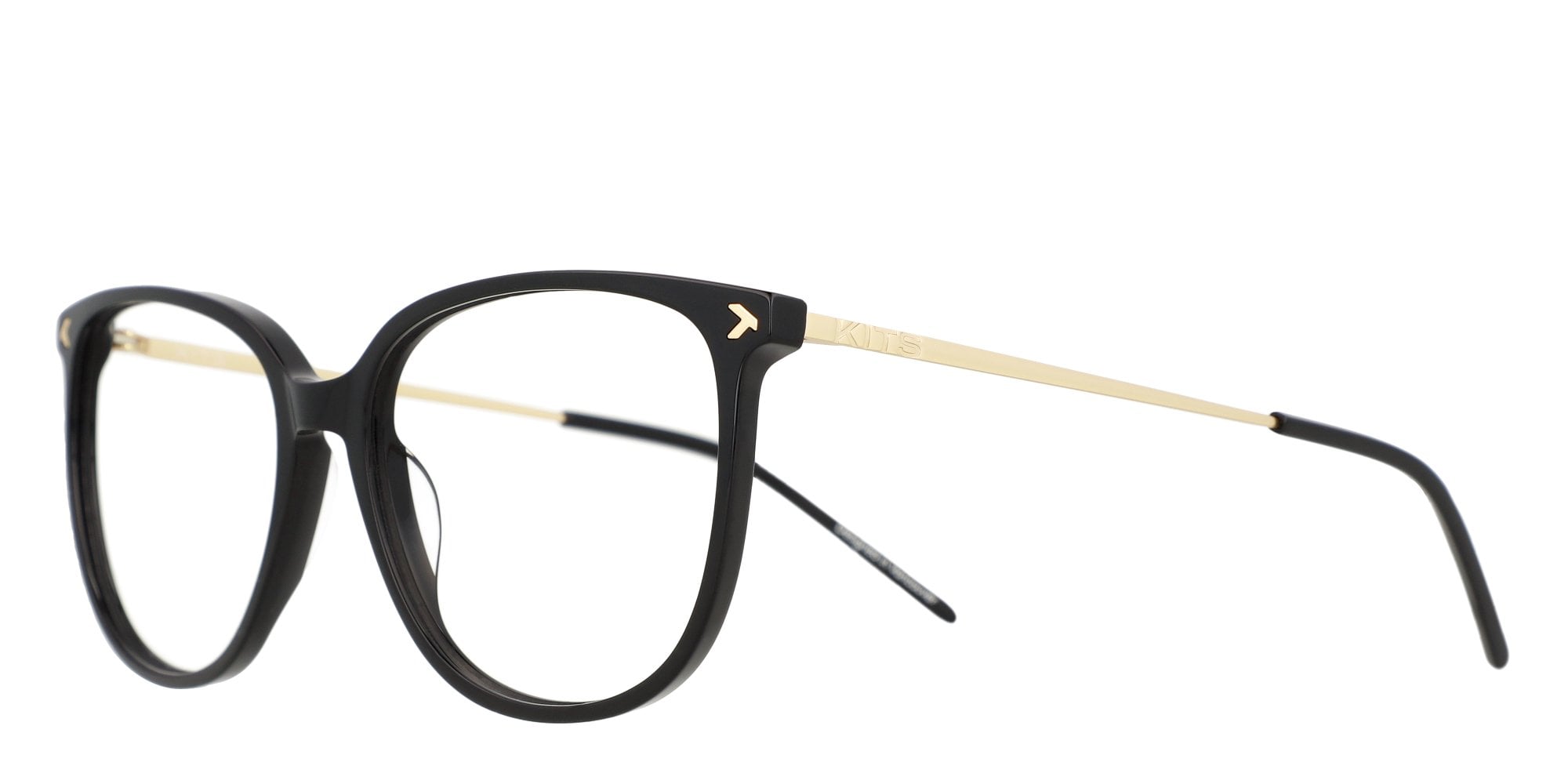 Cateye frame with lightweight acetate front paired with slim stainless steel temples
