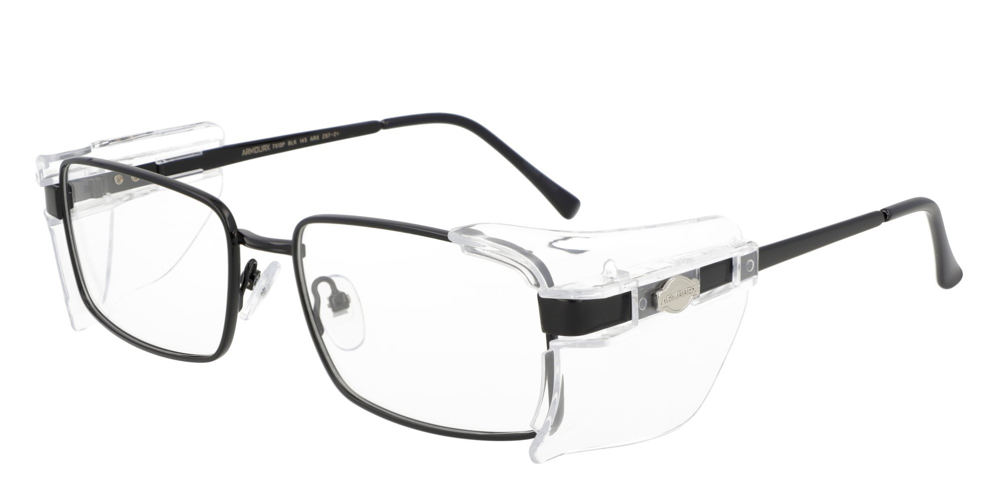 The ArmouRx 7013 safety glasses combine a streamlined rectangular silhouette with ANSI Z87.1 and CSA Z94.3 compliant protection for demanding work environments. Built on a resilient stainless-steel frame, these glasses are designed for durability and secure fit throughout extended use. They are prescription-ready, making them ideal for professionals who require both eye protection and vision correction. A versatile and dependable choice for safety-conscious wearers.