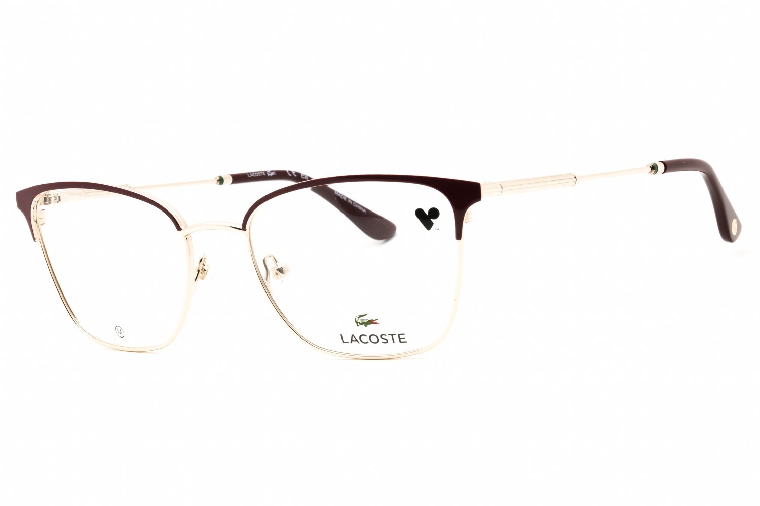 Lacoste L2303 in Burgundy/gold. This model features an eye catching shape to complement your facial features.The frame is made from quality materials, balancing weight and strength for your ultimate comfort.