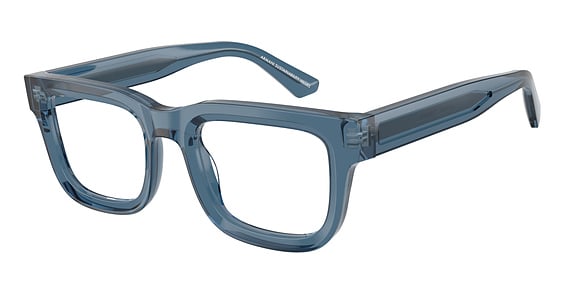 Emporio Armani EA3279 in Shiny Transparent Blue. This model features an eye catching shape to complement your facial features.The frame is made from quality materials, balancing weight and strength for your ultimate comfort.