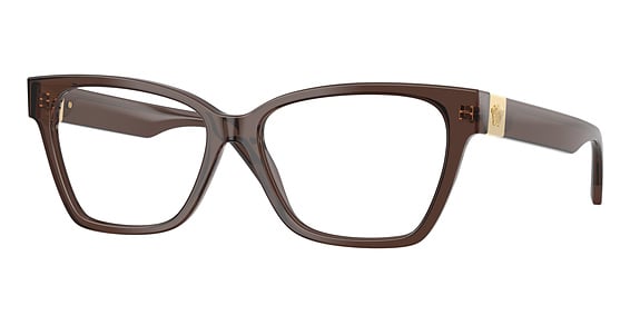Versace VE3382 in Transparent Brown. This model features an eye catching shape to complement your facial features.The frame is made from quality materials, balancing weight and strength for your ultimate comfort.
