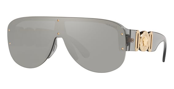 Versace VE4391 in Transparent Grey. This model features an eye catching shape to complement your facial features.The frame is made from quality materials, balancing weight and strength for your ultimate comfort.