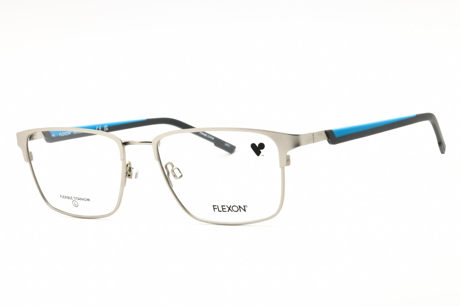 FLEXON E1154 in Satin Silver/ Cerulean. This model features an eye catching shape to complement your facial features.The frame is made from quality materials, balancing weight and strength for your ultimate comfort.
