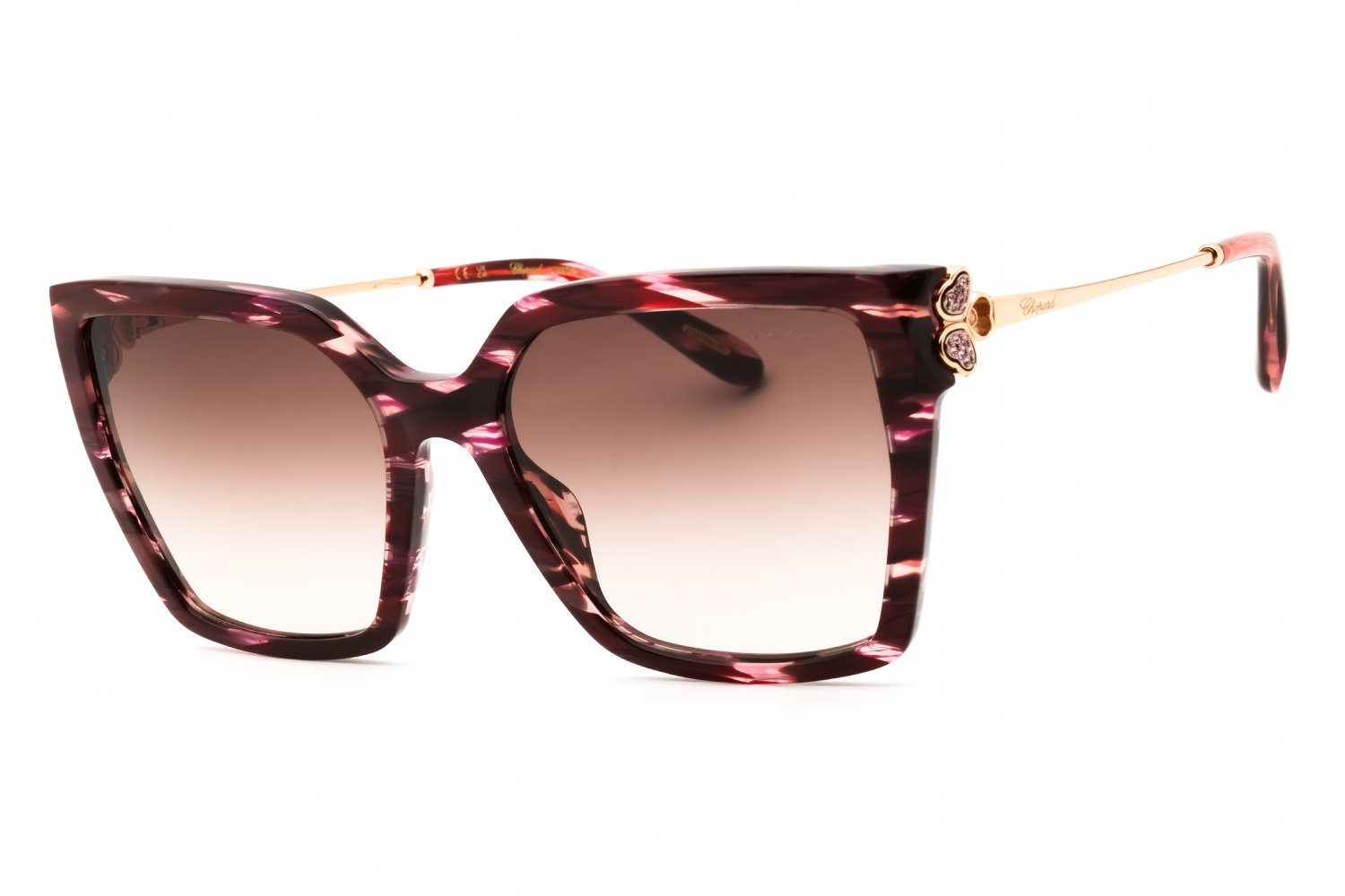 Chopard SCH371S in Shiny Streaked Burgundy. This model features an eye catching shape to complement your facial features.The frame is made from quality materials, balancing weight and strength for your ultimate comfort.