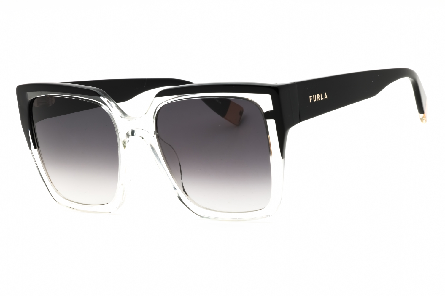 Furla SFU695 in Shiny Crystal. This model features an eye catching shape to complement your facial features.The frame is made from quality materials, balancing weight and strength for your ultimate comfort.