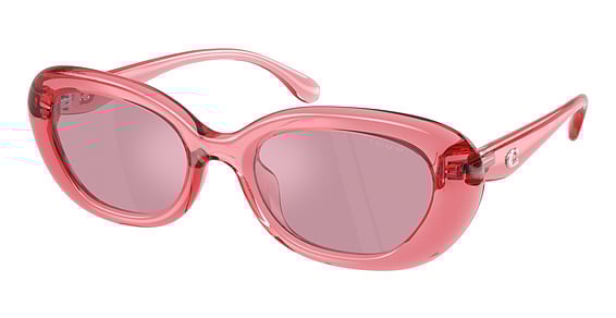 COACH HC8448U CDP35 in Transparent Pink. This model features an eye catching shape to complement your facial features.The frame is made from quality materials, balancing weight and strength for your ultimate comfort.