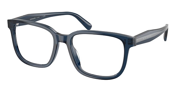 COACH HC6291U in Transparent Dark Blue. This model features an eye catching shape to complement your facial features.The frame is made from quality materials, balancing weight and strength for your ultimate comfort.