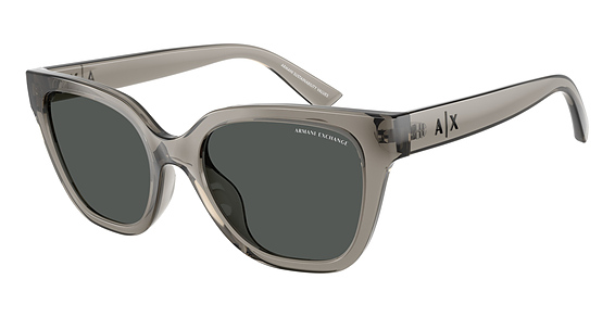 Armani Exchange AX4164SU in Shiny Transparent Grey. This model features an eye catching shape to complement your facial features.The frame is made from quality materials, balancing weight and strength for your ultimate comfort.