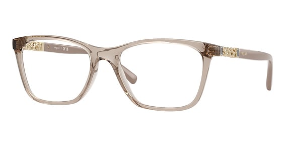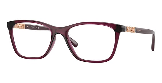 Vogue VO5632B in Transparent Cherry. This model features an eye catching shape to complement your facial features.The frame is made from quality materials, balancing weight and strength for your ultimate comfort.