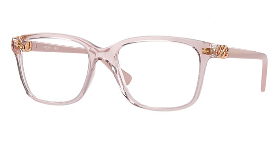 Vogue VO5574B in Transparent Pink. This model features an eye catching shape to complement your facial features.The frame is made from quality materials, balancing weight and strength for your ultimate comfort.