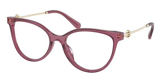 Tory Burch TY2149U in Berry Transparent. This model features an eye catching shape to complement your facial features.The frame is made from quality materials, balancing weight and strength for your ultimate comfort.