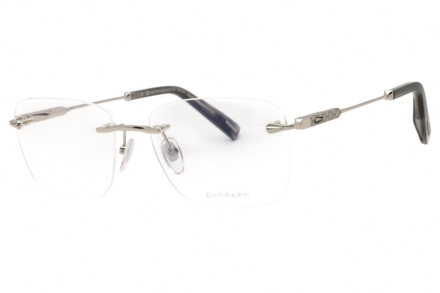 Chopard VCHG58 in Shiny Palladium. This model features an eye catching shape to complement your facial features.The frame is made from quality materials, balancing weight and strength for your ultimate comfort.
