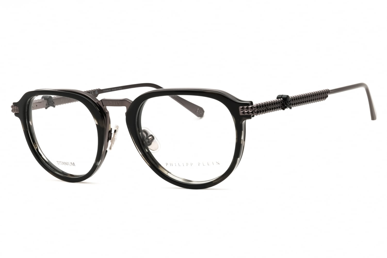 Philipp Plein VPP116V in Shiny Black. This model features an eye catching shape to complement your facial features.The frame is made from quality materials, balancing weight and strength for your ultimate comfort.
